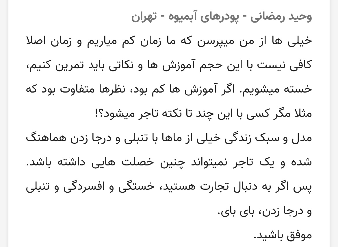 چقدر قشنگ و از ته دل بود کامنتهاتون عزیزان خداروند هرروز به عزت ارادمان بیافزاید و ما را در راه زیبای تجارت یاریمان کند ❤️❤️