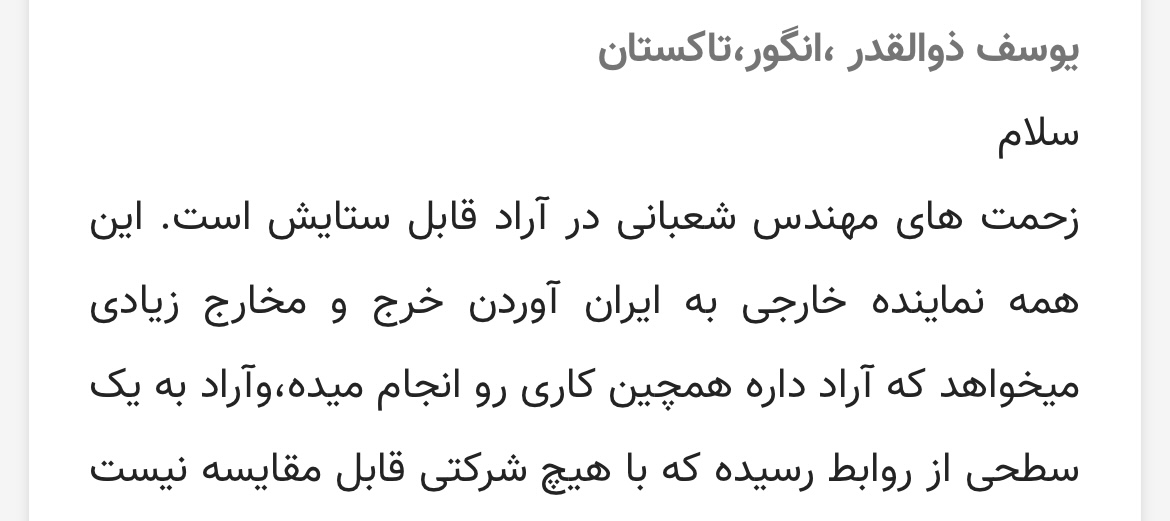 از تمامی افرادی که در بدنه آراد با تمام توان و دلی فقط برای سود رساندن به تاجران تلاش میکنند تشکر ویژه دارم.