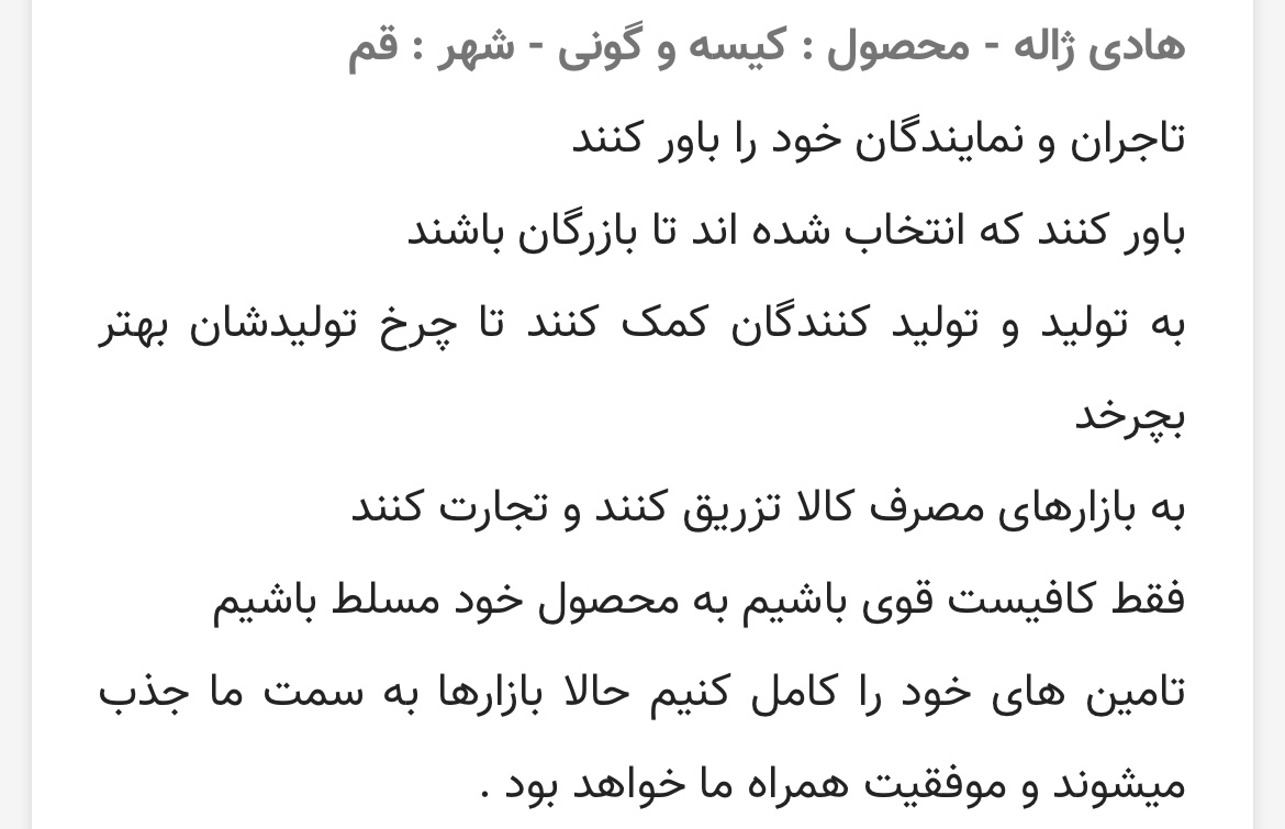 خیلی حس خوبییه ک تاجران عزیز میان مشارکت میکنن و نظرات خودشون رو میگن برای پیشبرد کار