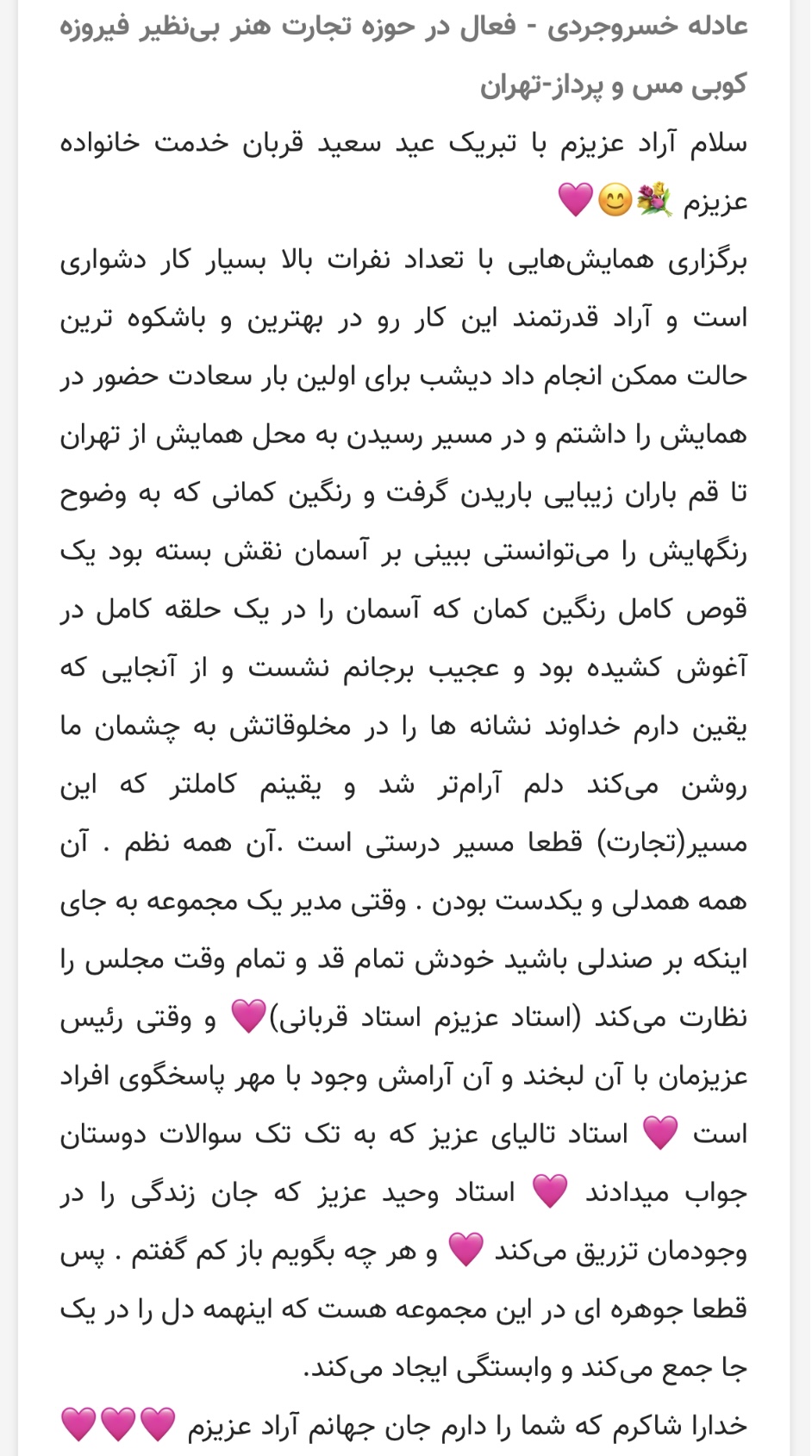 کامنت ها سرشاری از احساس و محبتی که در دل تاجران و کارمندان نهفته شده است.