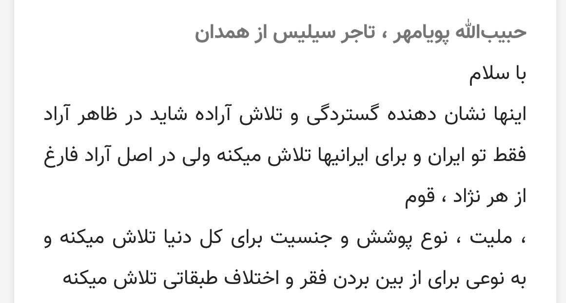 در میان کامنتهای زیبای منتخب این خبر، کامنت آقای زمانی از کرج بسیار جالب و تأمل برانگیز بود.
