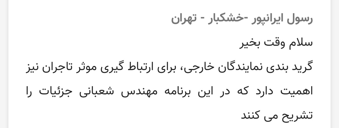 تبریک به جناب کیانی فر که با تلاش و پشتکارشون به صادرات رسیدن😍