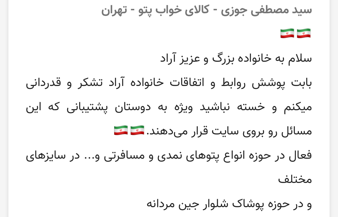 کامنتهای زیبا و جذابی رو خوندم که همگی نشون میده که تا چه حد تاجرهای عزیزمون دلبسته ی مجموعه ی آراد هستند و این حس خودشون رو ابراز میکنند.