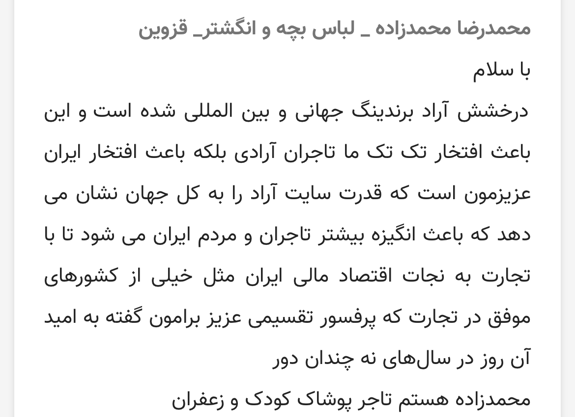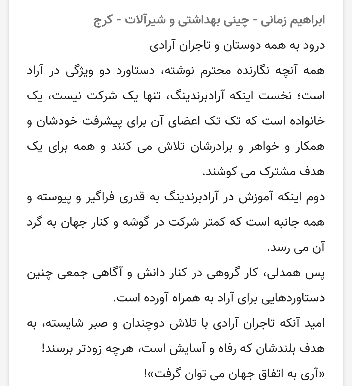با آرزوی موفقیت روزافزون برای آراد برندینگ عزیز و تجار آرادی