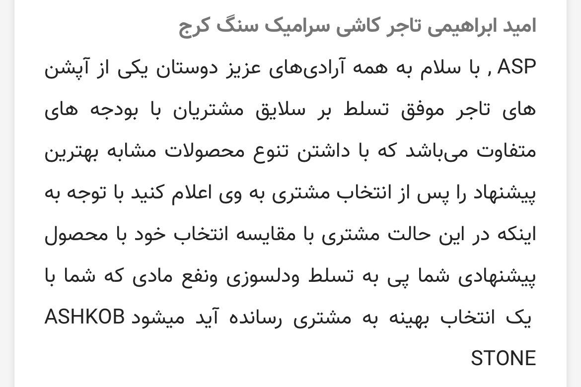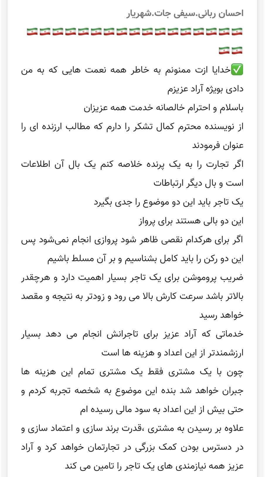 واقعا آراد دیگ داره سنگ تموم میزاره برای پیشبرد کار و ارتباط هر چه بیشتر تاجران با هم