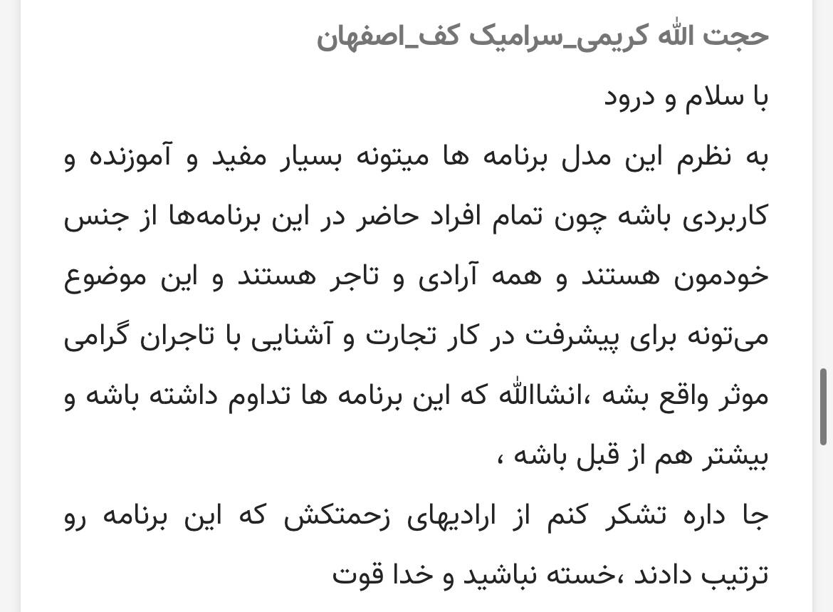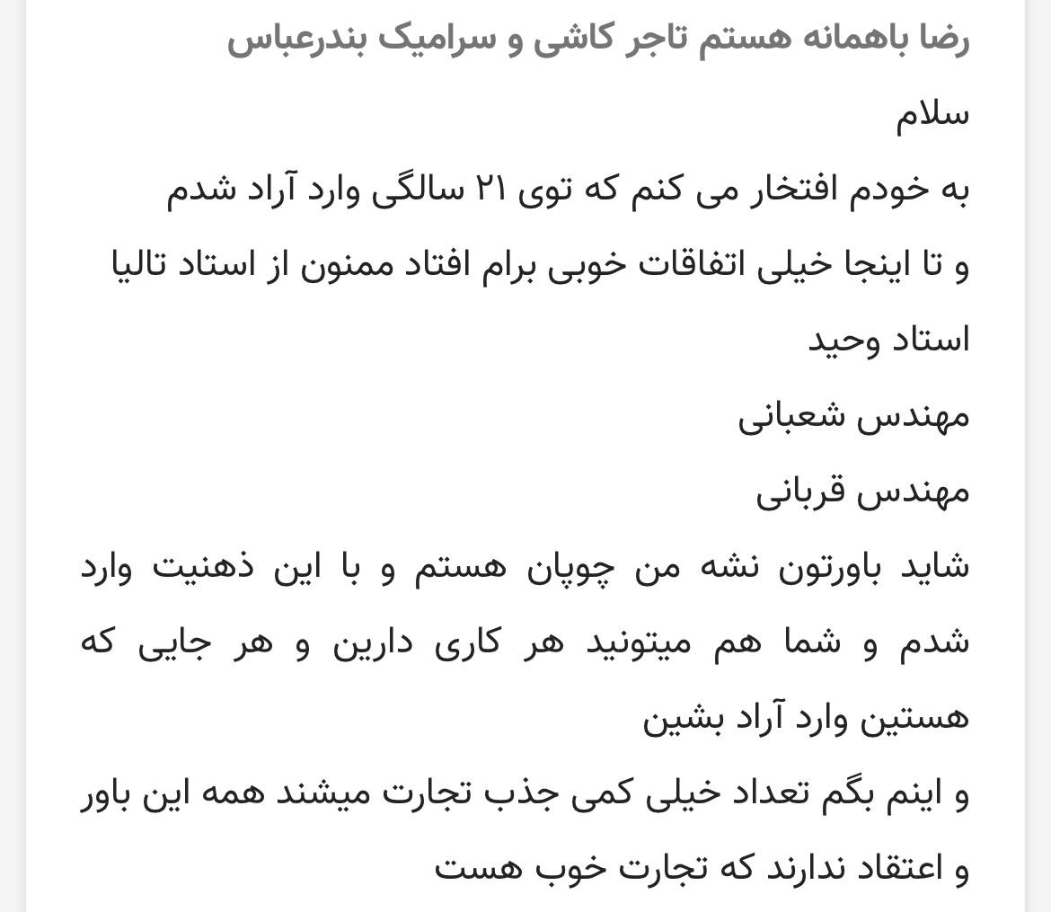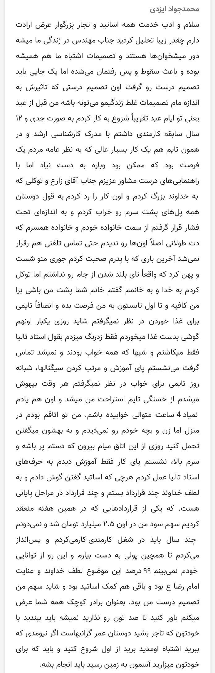 امیدوارم منم روزی مثل شما به آرزوهام برسم و همه کسانی که تجارت رو به سخره میگیرن رو تبدیل کنم به مشوق