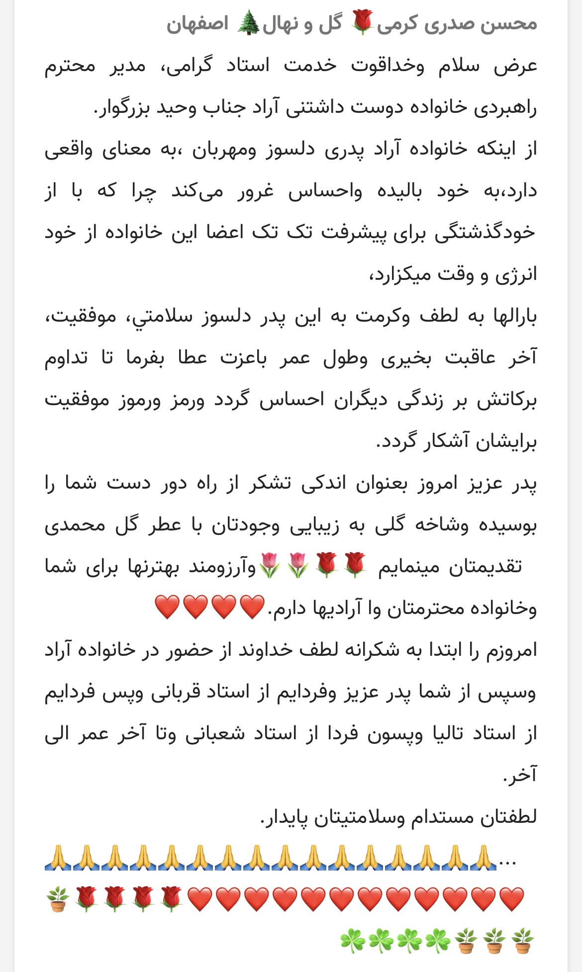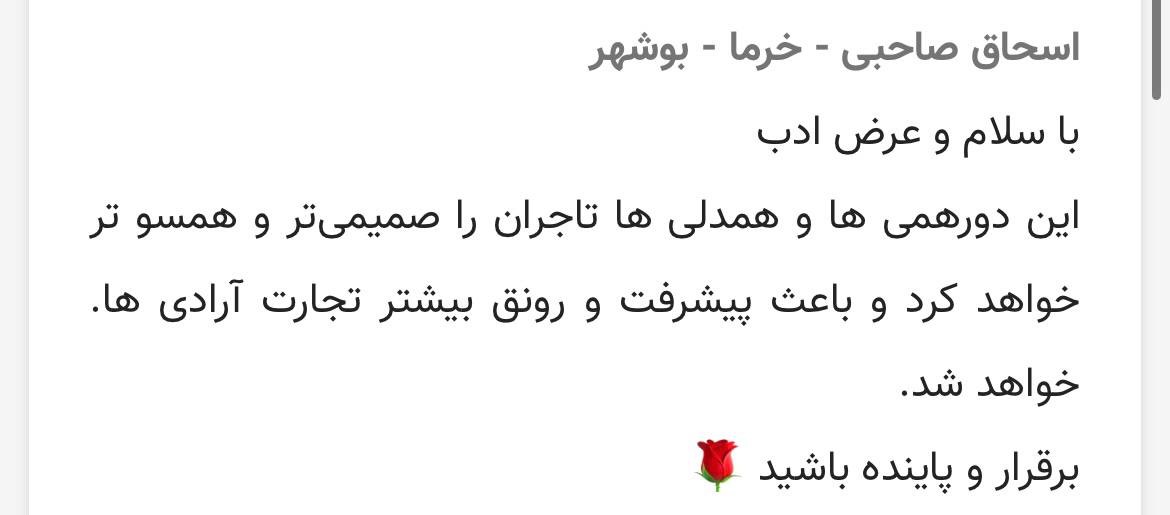 این شور اشتیاق تاجران برای برنامه های آراد بسیار ستودنی است ونشان از علاقهی آنها به آراد است .وعلاقه ی تاجران به آراد نشان خلوص نیت آراد است.💚🤍❤️