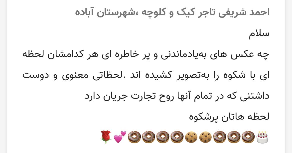 همین که زحمات دست اندکاران وتجارازچشم آراد پوشیده نیست وباتشویق همراه است باعث دلگرمی است.