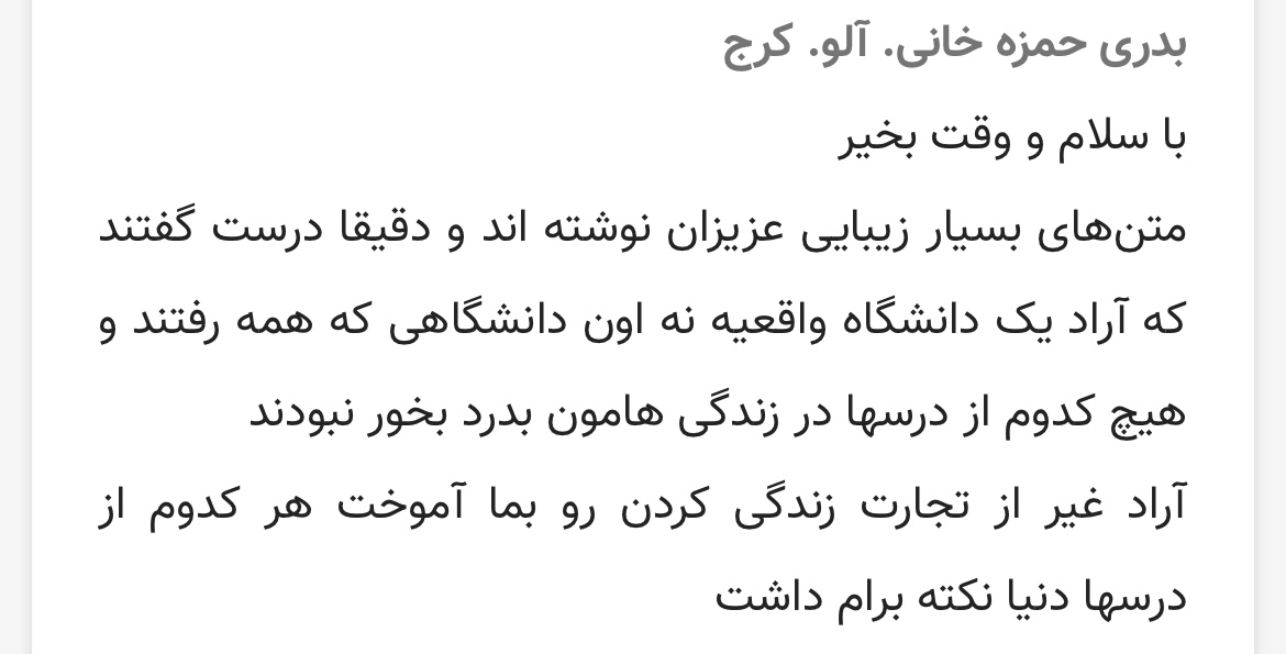بادرود وتندرستی خدمت تمام آرادیها