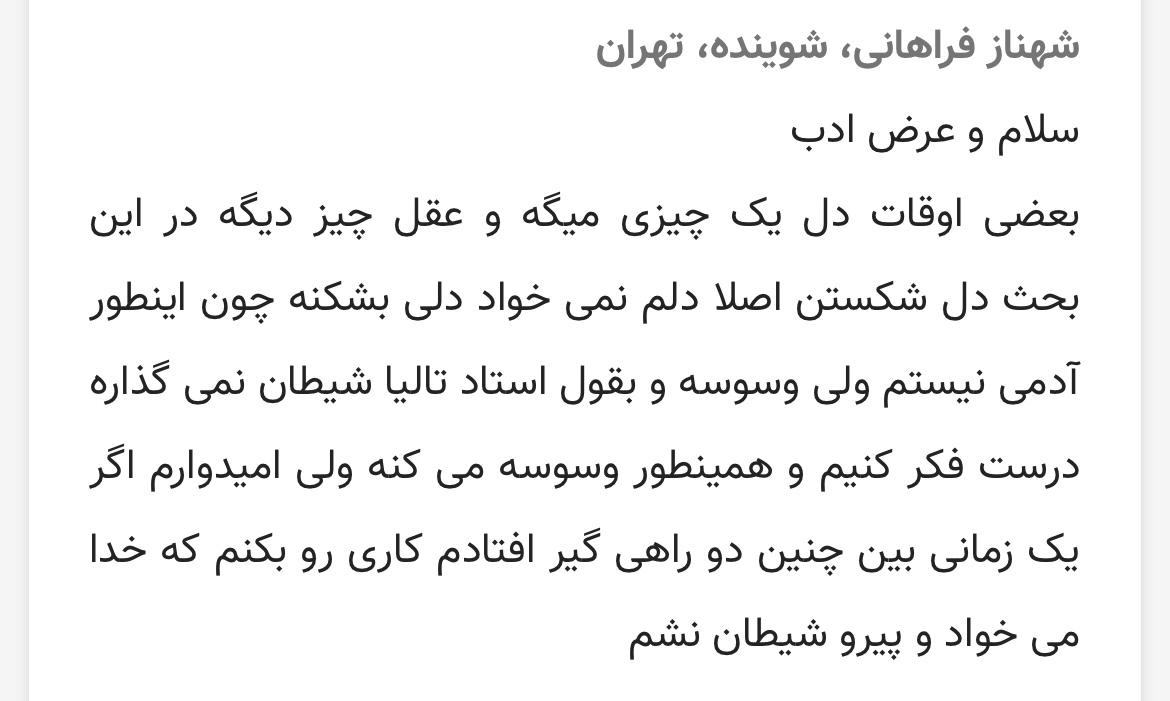 متن هاتون هر کدوم یه نقطه تمایزی دارن که به نظرم حق بود برنده شدن برای اون شخص…
