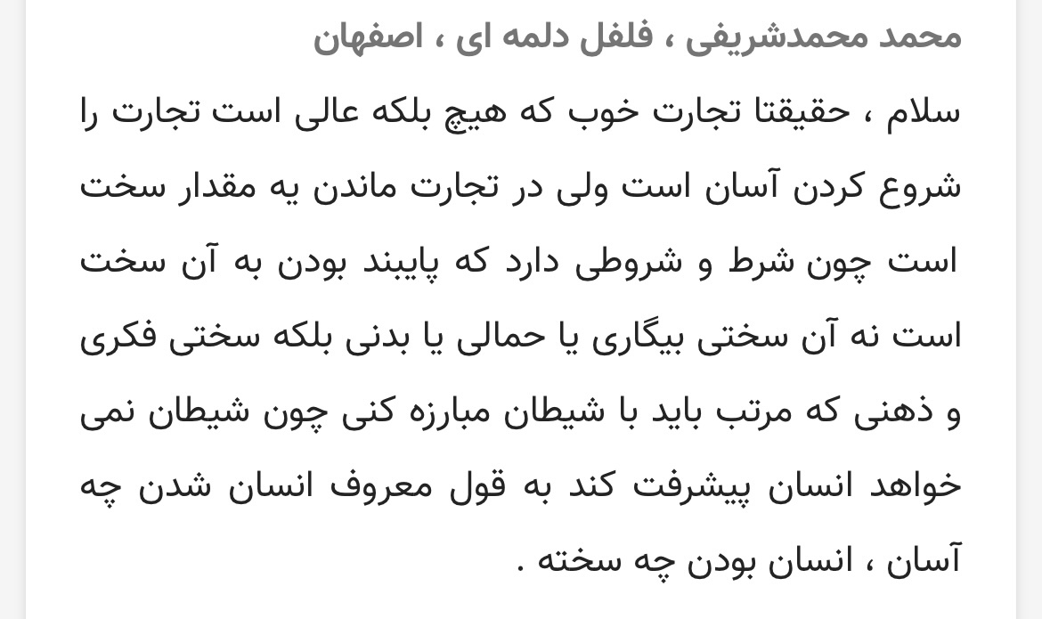 💯💯💯 آنچه از دل برآید بر دل نشیند و چقدر خوشحالم که تاجران ما حرفای دلی میزنند و من یاد میگیرم واقعا و رو خودم کار میکنم که بتونم همین برون ریزی عاطفی را داشته باشم. ان شاالله💞💞💞💗💗✌️✌️