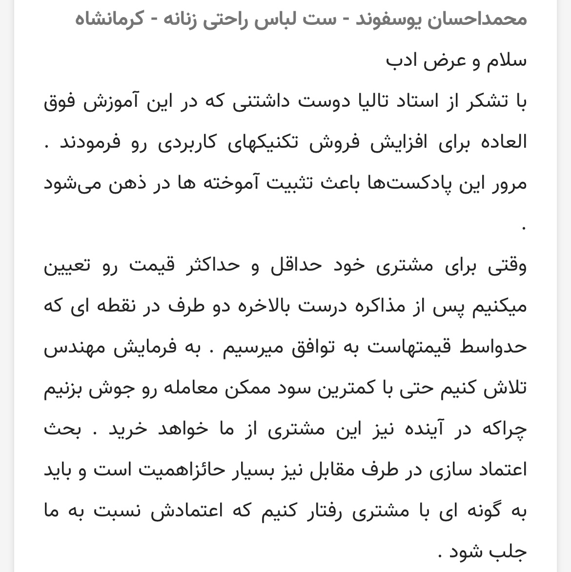 تبریک خدمت برندگان امروز بخصوص دوستانی که با گذراندن آموزش ها، قدرت مذاکره خود را افزایش داده و موفق به فروش و ارسال بار شده اند.