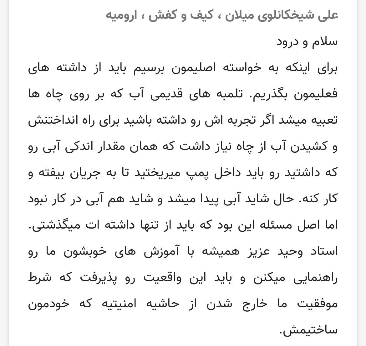 سلام ، تبریک میگم به دوستان فعال مخصوصا آقای کرمانی که واقعا یک انسان خیر خواه و فوق العاده هستند.