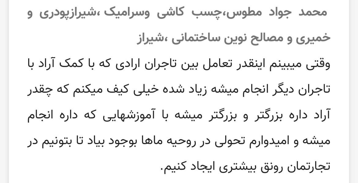 باز هم سپاسگزارم از آراد که زمینه ساز ایجاد ارتباط بین تاجران آرادی شده است و موجب اخوت و دوستی بین تاجران گرامی 👋🙏🍀🌹 شده است.