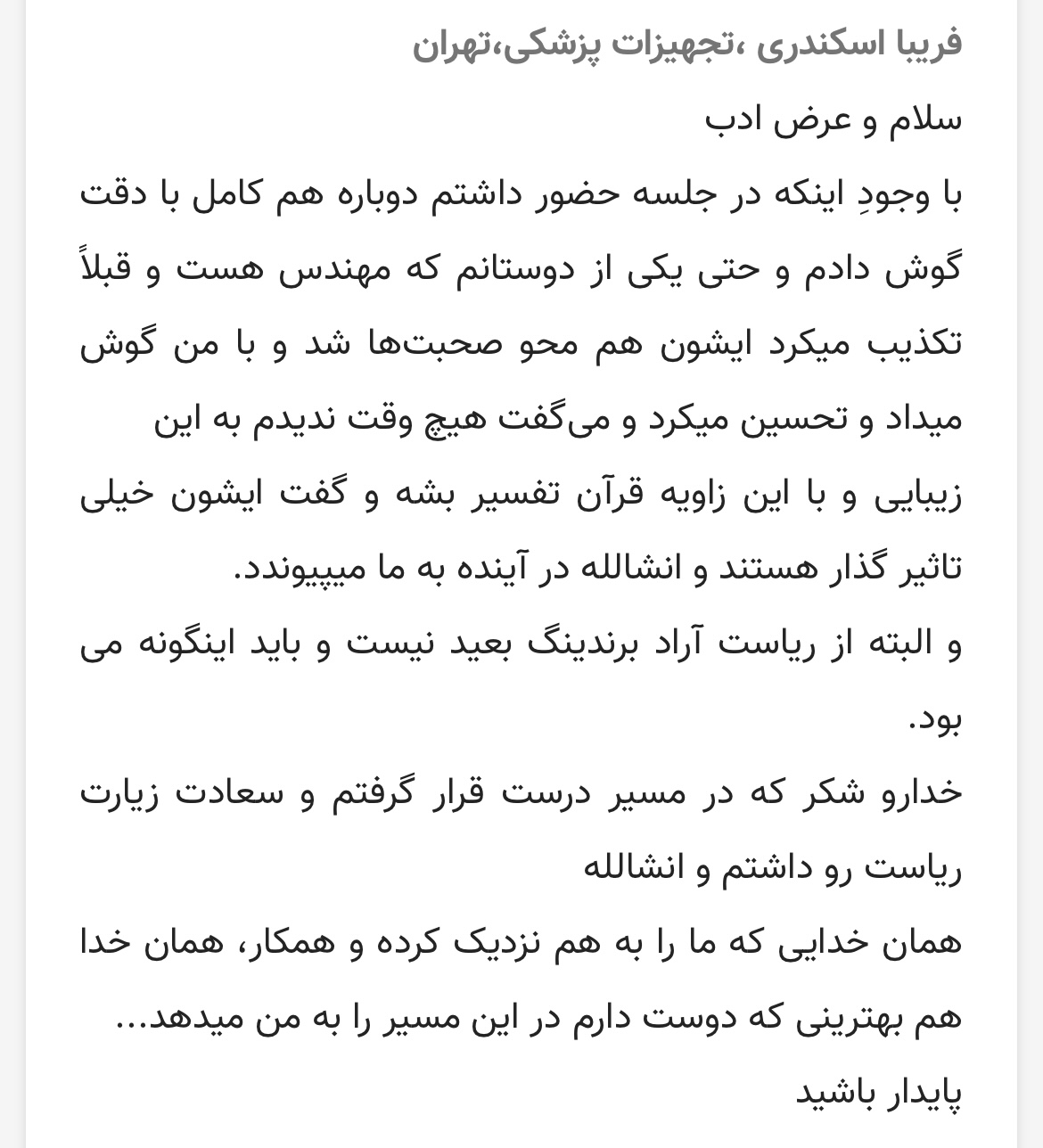 صبحها این کامنتها رو که میخوانم انرژی و انگیزهای میگیرم که با قدرت بیشتر به کار خود ادامه بدهم شبها وقتی این کامنتها رو میبینم خستگی از تن من بیرون میرود و میگویم الحمدالله که انقدر این مسیر قشنگ هست که این دوستان ما عاشقانه آراد و آرادی را دوست دارد