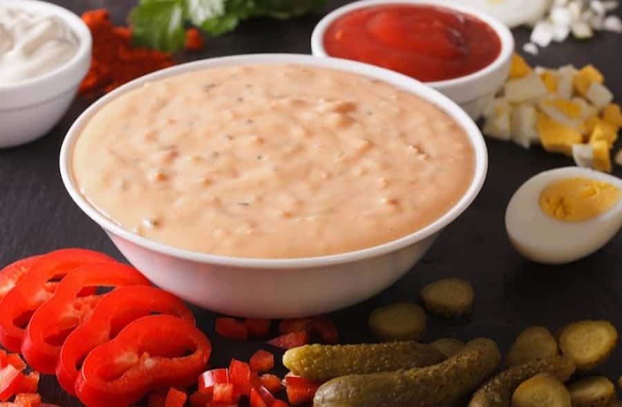 برای ساخت این سس در خانه در ابتدا باید پیاز، خیارشور و سیر را به طور کامل باهم مخلوط کنید و به حالت مایه ان را دربیاورید. در مرحله بعد باید به میزانی که دوست دارید سس کچاپ و سس مایونز را به همراه مقداری سس تند به ترکیبات قبلی پیاز و سیر اضافه کنید و ان ها را به خوبی هم بزنید. بعد از اینکه مواد ما به خوبی باهم مخلوط شد باید سرکه و نمک را اضافه کنیم و مثل مراحل قبل باید ان را دوباره مخلوط کنیم.