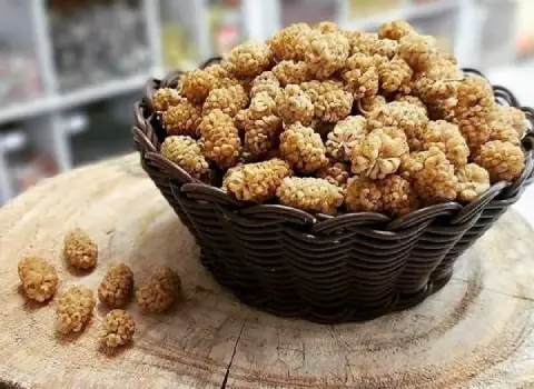 توت خشک جزء تنقلات پر مصرف است از توت خشک بیشتر در ترکیب آجیل شب یلدا، مشکل گشا استفاده می کنند.