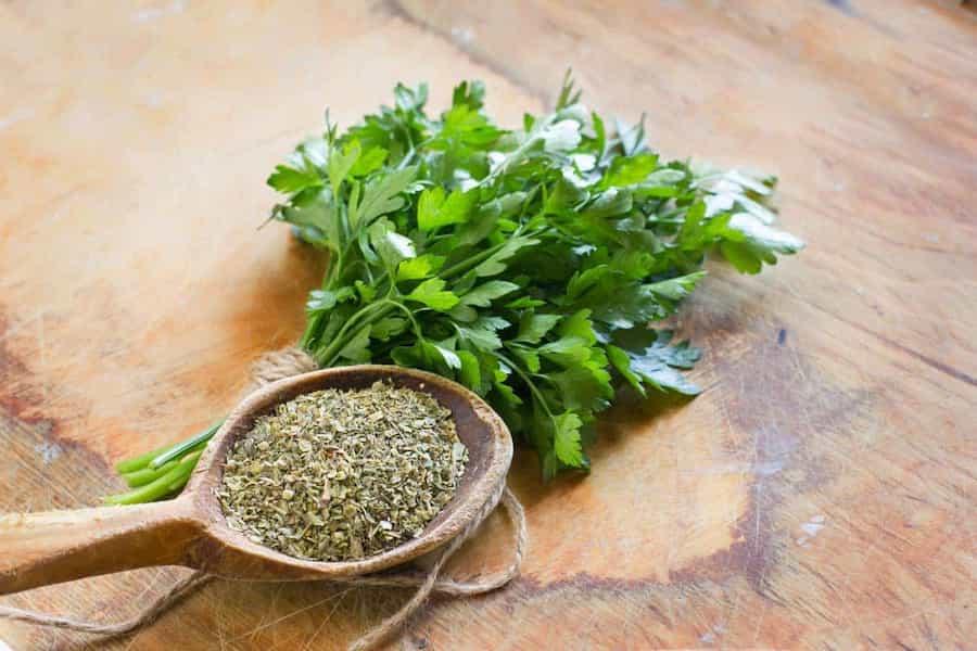 سبزی جعفری را پاک کنید، بشویید و سپس در آفتاب و یا زیر باد پنکه قراردهید تا رطوبت اضافی آن کشیده شود و سپس آنرا پودر کنید.