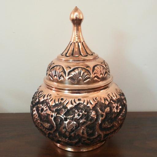از دیرباز ایرانیان به مهمان نوازی شهرت فراوانی دارند. یکی از ظروفی که در پذیرایی از مهمانان شما را یاری می دهد شکلات خوری مسی رومیزی میز عسلی است. بله درست شنیدید یک انتخاب زیبا و هوشمندانه که جلوه خاصی به میز پذیرایی شما می دهد و نشان دهنده حسن سلیقه شماست. شما می توانید شکلات و شیرینی هایی که برای پذیرایی از مهمانان خود در نظر گرفته اید را در شکلات خوری مسی بچینید و با شایستگی از مهمانان خود پذیرایی کنید. شکلات خوری مسی رومیزی به زیبایی طراحی و ساخته شده به گونه ای که رنگ بدنه شکلات خوری با رنگ زیبای مس پوشیده شده و سطح داخلی آن با قلع سفید پوشیده شده که ترکیب این دو رنگ زیبایی خیره کننده ای را به این محصول داده است.