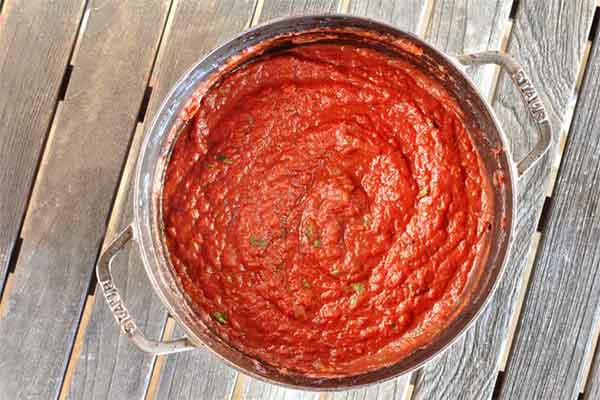 ریختن نمک باعث می شود که گوجه ها آب بیاندازد و باعث افزایش ماندگاری آنها شود همچنین باعث می شود که پوست گوجه به راحتی از آن جدا شود. پس از این که گوجه ها به مقدار لازم نرم شد آن را از روی حرارت بردارید و اجازه دهید مواد کمی سرد شود سپس با کمک یک صافی که سوراخهای بسیار ریزی دارد به خوبی گوجه ها را با قاشق و یا دست فشار دهید تا پوست و دانه آن جدا شود.