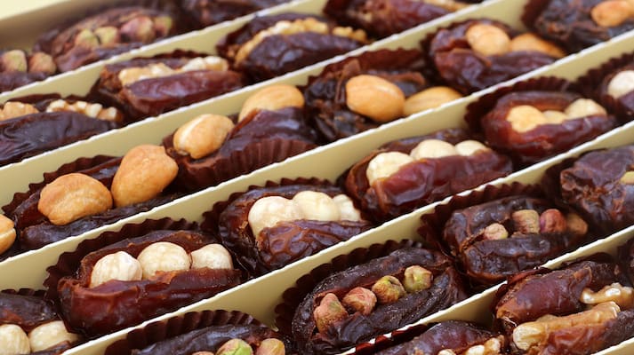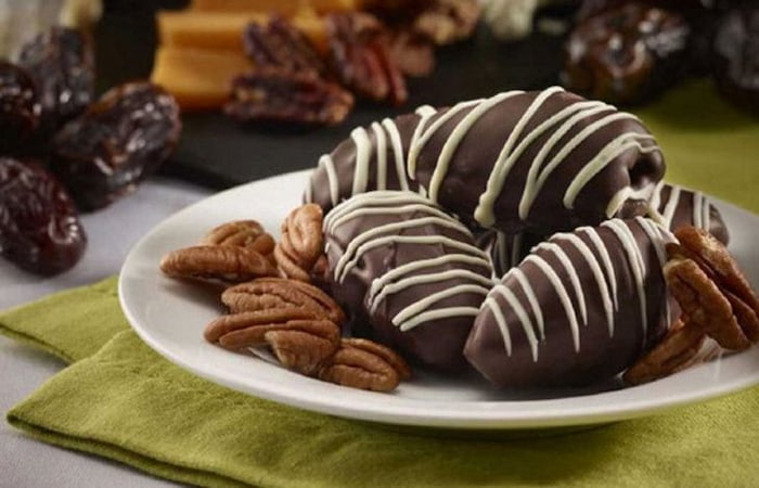 خرما به علت داشتن خواص فراوان و بی نظیری که دارد از قدیم الایام تا به حال مورد توجه و استفاده مردم دنیا قرار گرفته است و افراد به طرق مختلف آن را مصرف می کنند طرز تهیه خرما شکلاتی مغزدار یکی از پرطرفدار ترین طرق استفاده از این میوه شیرین می باشد که اکنون برای شما به صورت کامل توضیخ می دهیم. طرز تهیه خرما شکلاتی مغزدار: