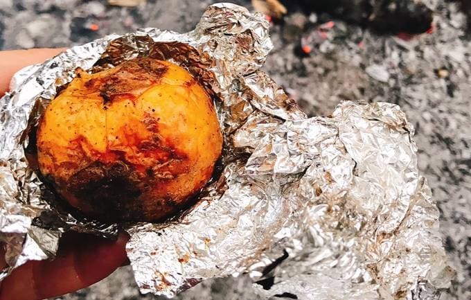 زمانی که شما در جنگل یا حتی د کنار دریا هستید می توانید از سیب زمینی کبابی که یک میان وعده عالی به شمار می آید استفاده کنید فقط کافی است تا با روشن کردن آتش محیط پخت را برای سیب زمینیها آماده کنید.