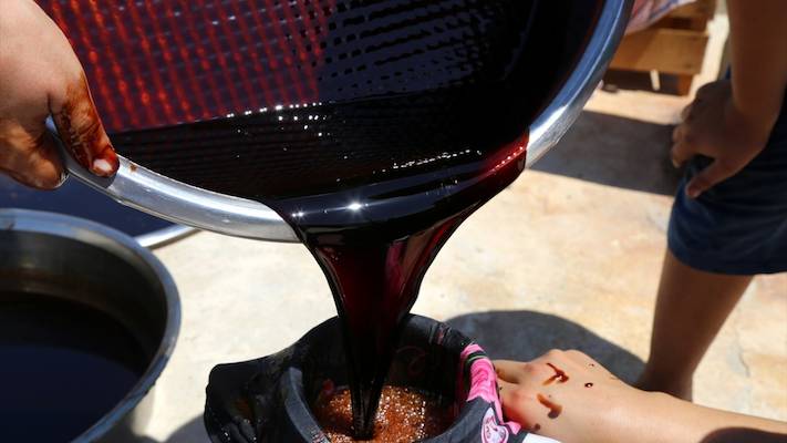 آنها بعد از این که انگورها را از باغ می چینند، شستشو می دهند و با چکمه هایی آنها را در حوض مخصوص لگد مال می کنند تا آبی که در آنها وجود دارد از حوض خارج شود و به داخل ظرف مورد نظر برسد.