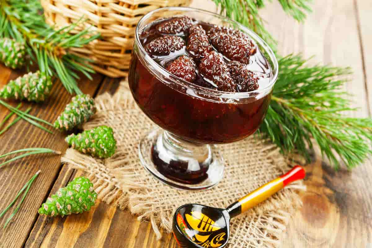 جهت خوش طعم شدن آن مقداری رب انار به توت و آب در حال جوش اضافه می کنیم و همچنین نصف پیمانه شکر به مواد در حال پخت می ریزیم و اجازه می دهیم با حرارت کم پخته شود. پس از مدتی به غلظت مناسبی می رسد و می توان آن را از روی حرارت برداشته و سپس آن را در مکان مناسبی قرار می دهیم تا خنک شود و پس از خنک شدن آن را در ظرف مناسب ترجیحاً شیشه ای قرار می دهیم و در یخچال نگهداری می کنیم.