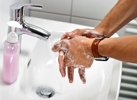 استفاده از مایع دستشویی با صابون گلنار برای بهداشت دستها