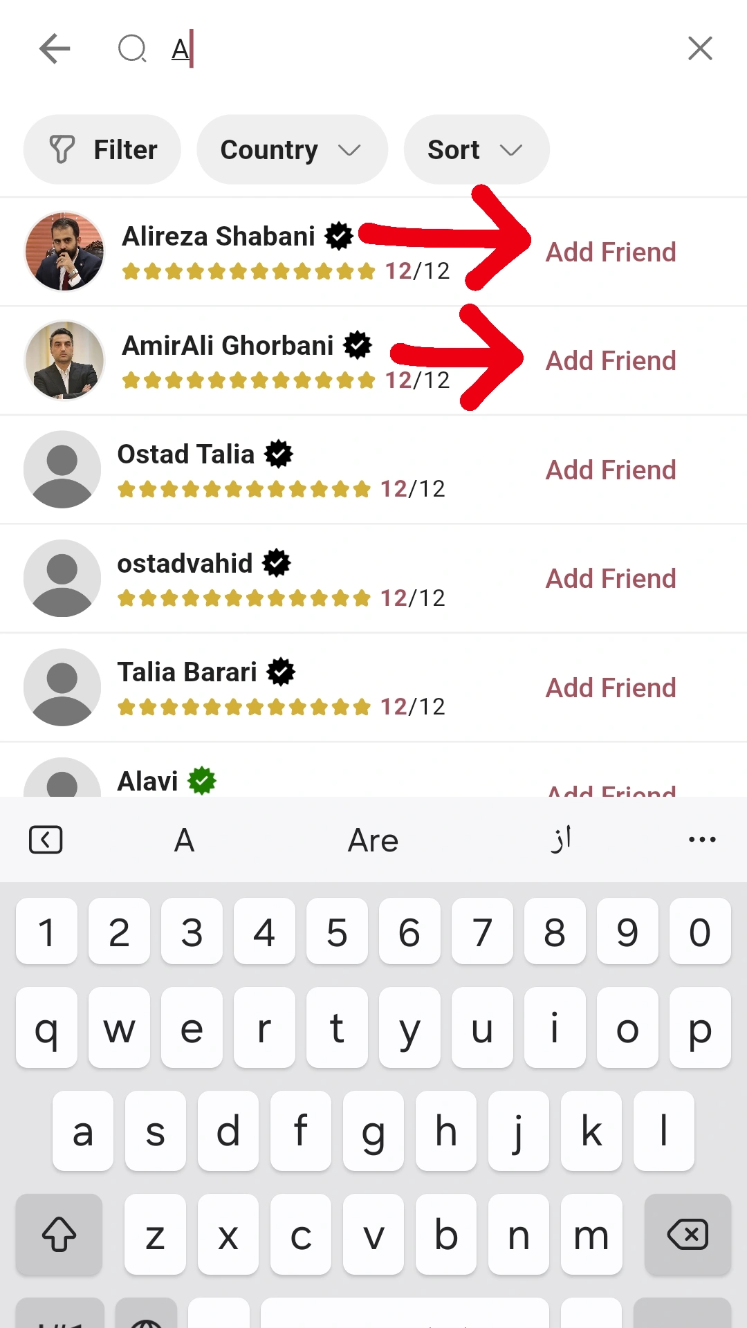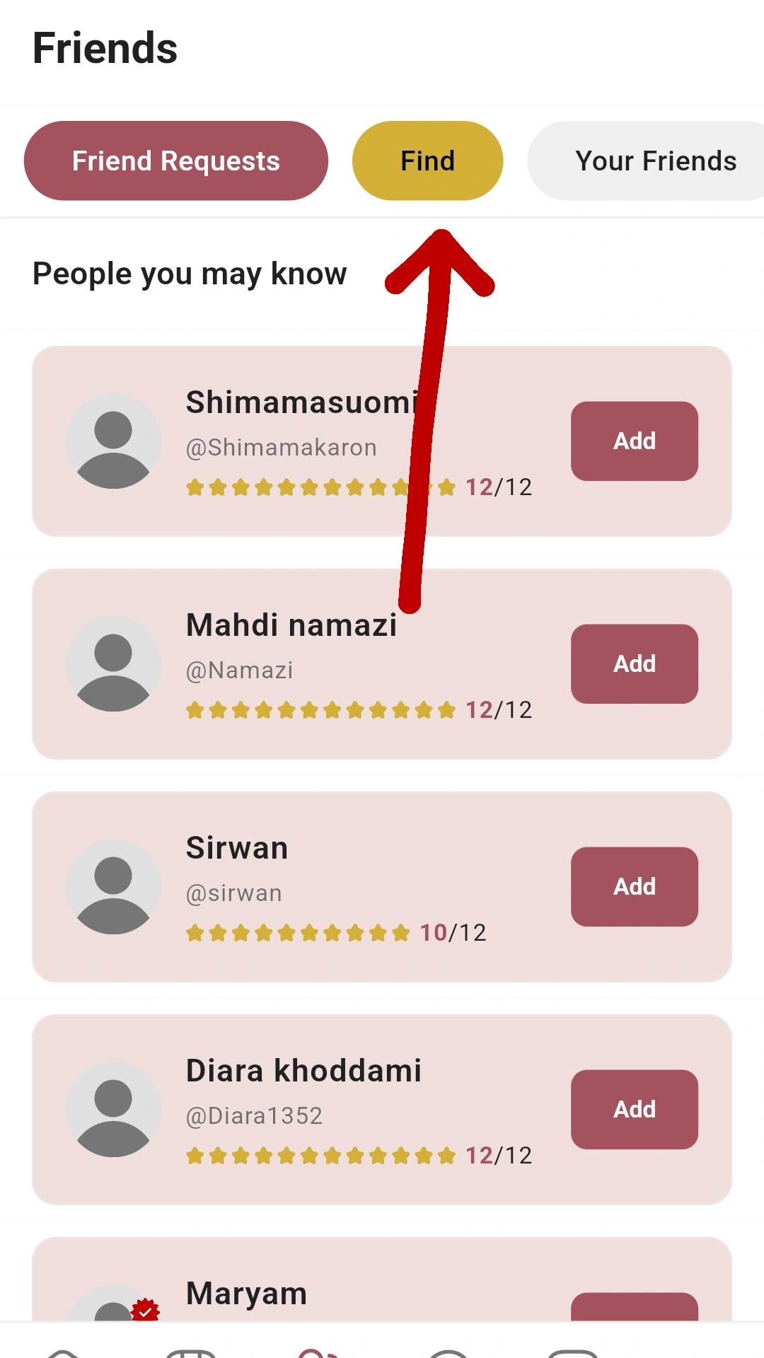 برای اضافه کردن فرندز مراحل زیر را طی کنید: