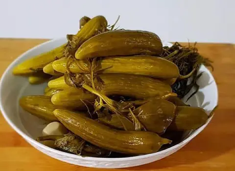 خیارهای ریز بوته ای، مقادیری سبزی معطر و فلفل تند و چند حبه سیر استفاده می شود.