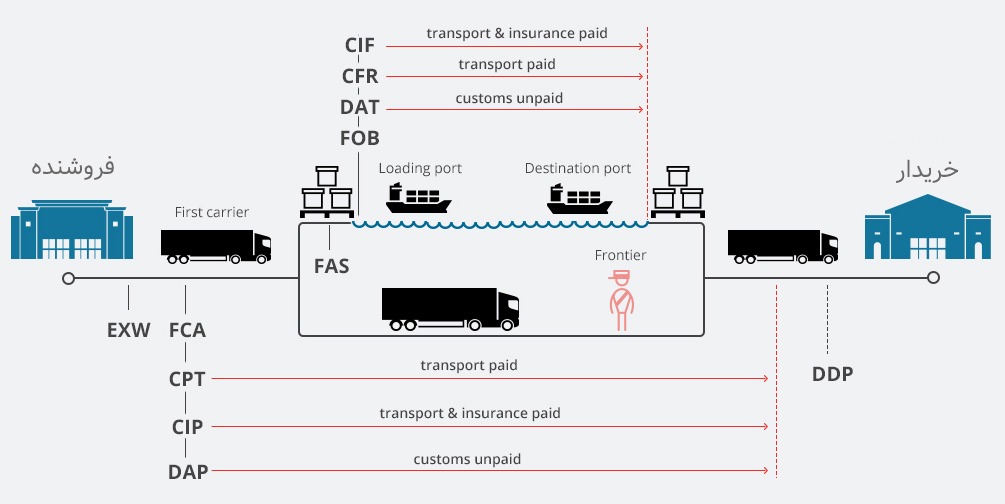 پس باید بدانید که صادرات صرفا فقط فروش محصول نیست. نیاز هست که شما شرایطی را برای تحویل محصول محیا کنید! البته در دنیای صادرات برای حل این مسئله شرایط مشخصی را در قالب اینکوترمز تعریف کرده اند. اینکوترمز شرایط حمل و نقل کالا و ریسک ها و خطر های آن را بررسی می کند.