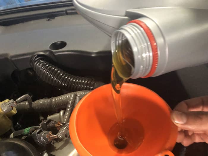 سپس فیلتر جدید را قبل از تعویض روغن، جایگزین فیلتر قبلی کنید. بعد از جایگزینی فیلتر با استفاده از یک قیف تمیز، روغن را به درون آن اضافه کنید دقت کنید که این کار بدون ریزش از فیلتر و پیچ تخلیه انجام گیرد. در مرحله ی آخر سطح روغن را به خوبی بررسی کنید به این صورت که خودرو را روشن بگذارید و میله ای را که کنار موتور قرار گرفته و حلقه ی قرمز رنگی دارد بیرون کشیده و با دستمال تمیز کنید سپس مجددا آن را در جای خود برده و دوباره بیرون بیاورید. اگر سطح روغن از خط تراز پایین تر بود باید روغن به آن اضافه کنید و اگر بالا تر از حد تراز بود باید مقدار آن را کاهش دهید.
