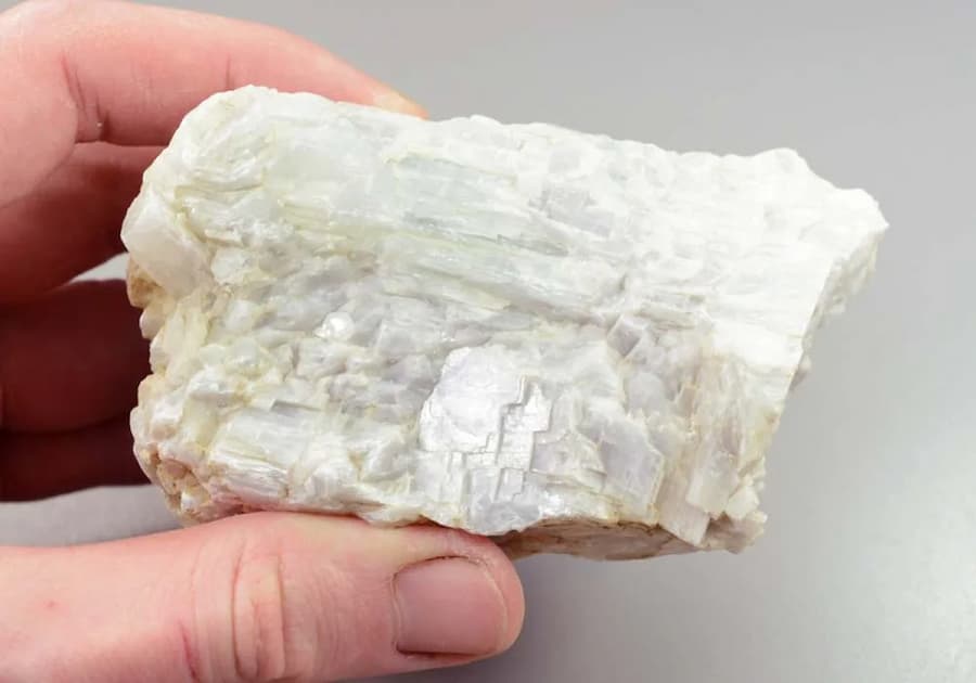 شکل بلورهای این سنگ حالت اورتوترومبیک داشته و اندازه ی این بلورها گاهی تا ارتفاع یک متر متفاوت می باشد و در صورت داشتن شکل مکعبی ابعاد آن با عرض و ارتفاع تا دو متر وجود دارند، در برخی مواقع شکل گیری این سنگها در معدن حالت تیغه ای به خود گرفته و شکل نهایی منشوری را ایجاد می کند که این شکل منشوری در هر زاویه ای که مقابل نور قرار گیرد رنگ خاصی را منتشر می کند و یک شکل بی نظیر و زیبا را به خود می گیرد.