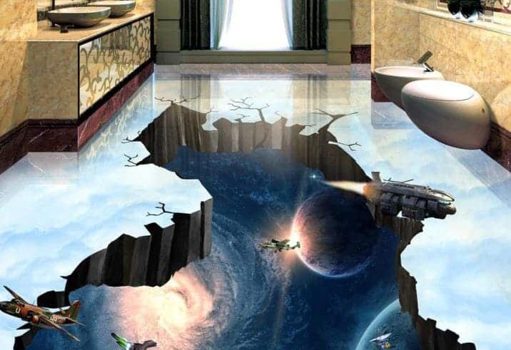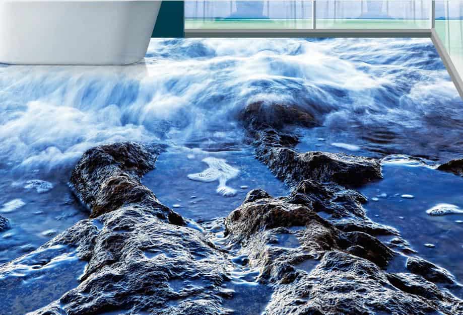 برای مثال تصور کنید که در یک مهمانی بعد از رفتن به سرویس بهداشتی احساس کنید که پای خود را کف یک آکواریوم قرار دادید و بسیار شگفت زده و شوکه شوید اما این فقط یک طرح سه بعدی در سرامیکها با نمای آکواریوم می باشد. طرح این نوع سرامیکها به گونه ای است که سطح صافی دارند و اگر با فاصله به آنها نگاه کنید به صورت عمق دار یا برجسته به نظر می رسند.