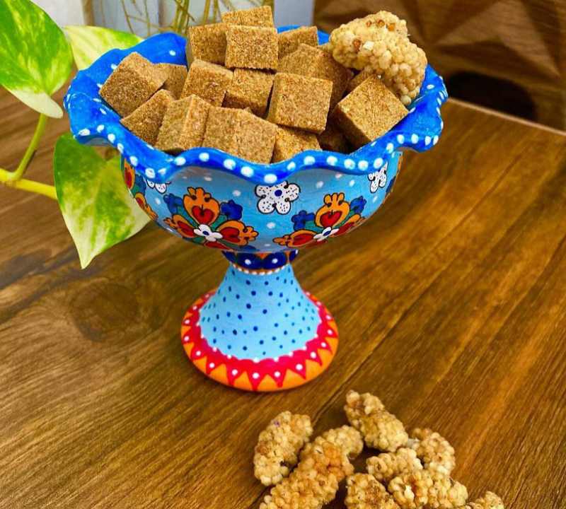 | مشخصه ظاهری | شکل مربع، بافت ترد، رنگ قهوه ای و کرم |