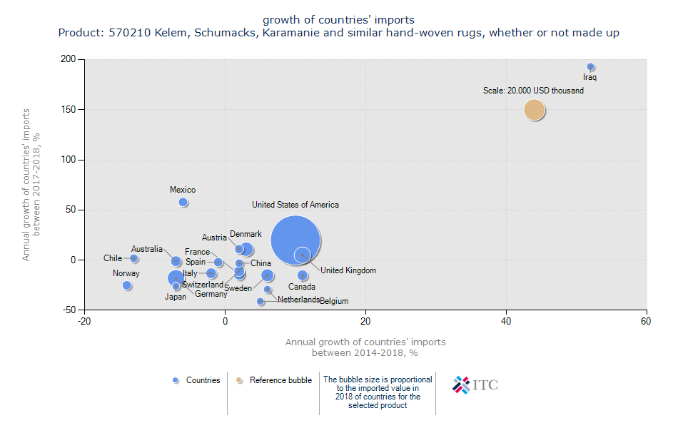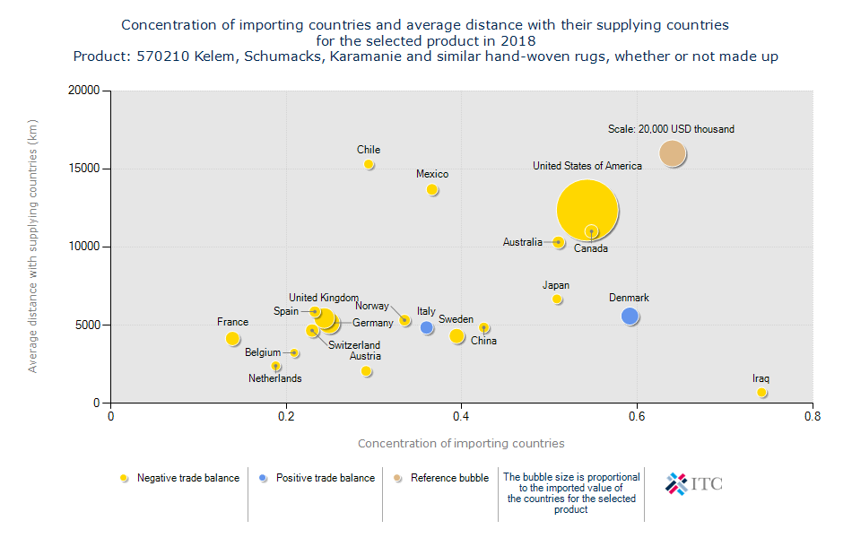 میانگین فاصله از کشور وارد کننده: ۵,۷۸۸ KM آمار واردات گلیم هدف شناخت متقاضیان و پتانسیل ها در بازار جهانی است.