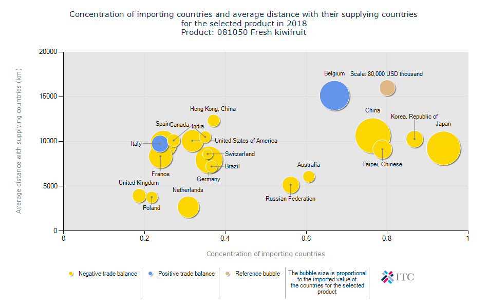 هرچه دایره ها به سمت بالاتر باشند گویای این است که فاصله ی کشور واردکننده تا محل تامین آن بیشتر است به عبارتی شعاع فاصله ای که میتوانیم در آن فعالیت کنیم بیشتر است.