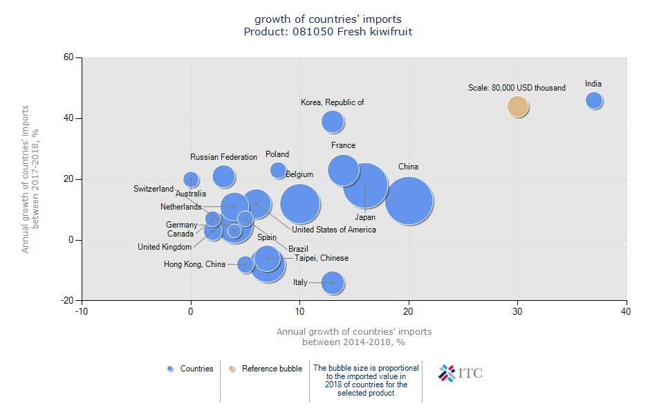 محصول کیوی ایران به دلیل وجود اختلاف زمان برداشت با نیم کره جنوبی، امکان عرضه در بسیاری از بازارهای اروپایی و آسیایی را دارا است.