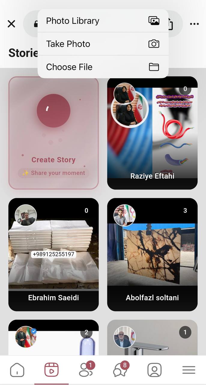 ۲. انتخاب گزینه “ایجاد استوری جدید”