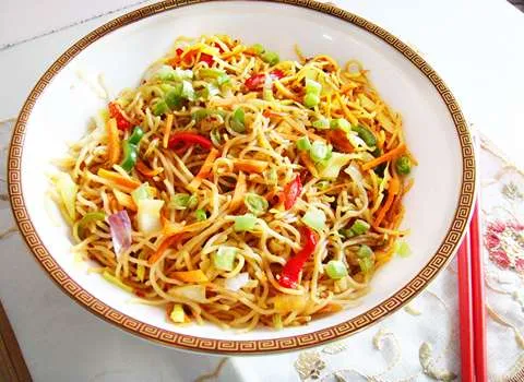 سبزیجات به صورت خرد شده و تفت داده شده در کنار نودل مورد استفاده قرار میگیرند.