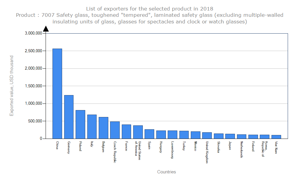 آمار صادرات شیشه دو جداره هدف شناسایی رقبا در بازار جهانی است.