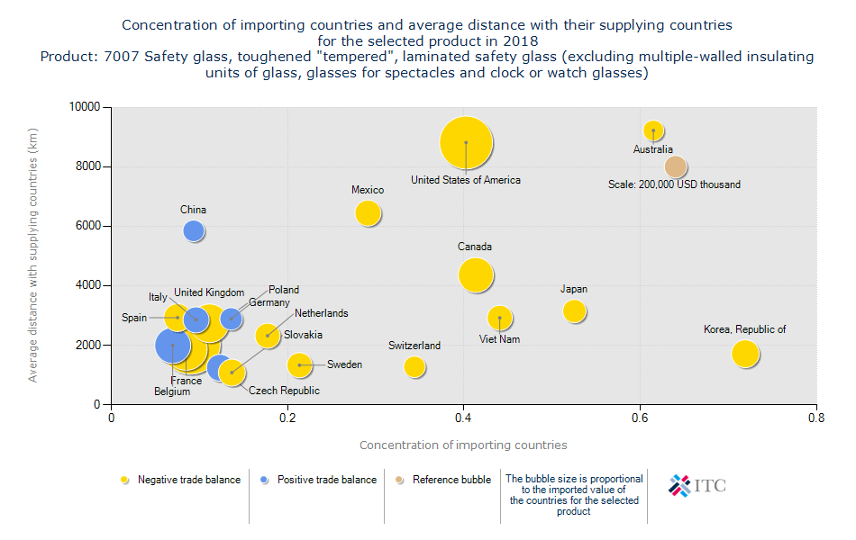میانگین فاصله از کشور وارد کننده: ۳,۰۳۶ KM آمار واردات شیشه دو جداره هدف شناخت متقاضیان و پتانسیل ها در بازار جهانی است.