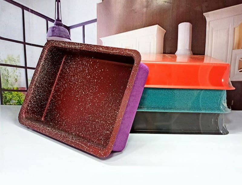 قالبهای تفلون بیشتر مناسب پخت انواع کیک و شیرینی مختلف می باشد که در همه نوع سایز و ابعاد ساخته و تولید می شود از قالب تفلون مستطیل گرد بزرگ بیشتر برای پختن شیرینها و کیکهای متنوع در منازل، قنادیها، فست فودها و غیره مورد استفاده قرار می گیرد. تنوع در ساخت قالبهای تفلون دارای مزیتها و معایبی می باشد همیشه انتخاب یک قالب تفلون با ابعاد مناسب می تواند در فرم نهایی و زیبایی مواد غذایی ما تاثیر داشته باشد از این رو انتخاب و خرید یک قالب تفلون مناسب بسیار مهم است و باید از یکسری نکات حائز اهمیت را برای انتخاب خود مطلع باشیم. همانطور که می دانید قالبهای زیادی در بازار وجود دارد که هر کدام از آنها برای ابعاد کار خاصی تولید شده اند و دارای جنسهای متفاوتی می باشند قالب تفلون مستطیل و قالب گرد بزرگ بیشتر مناسب پخت کیکهای خانگی می باشند معمولا کیکها در قالبهای تیره رنگ پخت بهتری دارند. چرا که رنگ تیره قالب سبب جذب بهتر و بیشتر گرما در مواد می شود قالبهای مستطیل بزرگ سبب می شود تا گرما بصورت یکنواخت به کیک برسد و کیک بهتر پخته شود شما با آگاهی از شاخصه های قالب تفلون می توانید تصمیم مطلوب تری در خرید بهترین قالب داشته باشید. اگر در زمان پخت کیک شما در قالب حالت گنبدی شکل پیدا می کند این به سبب نامیزان بودن دمای پخت است که باعث می شود حرارت بصورت یکنواخت به مواد نرسد.