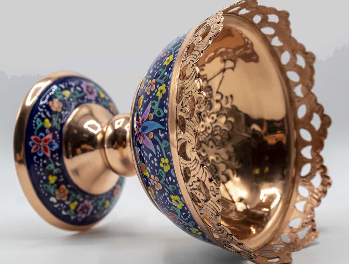 از نظر مجموعه ما یکی از زیبا ترین شکلات خوری گل برجسته مسی که تولید کره ایم فیروزه ای است که از قیمت خوبی هم برخوردار می باشد به همین دلیل بیشتر افراد این رنگ را سفارش می دهند، زیرا از نظر این افراد فیروزه ای رنگ بسیار خوش رنگی می باشد.