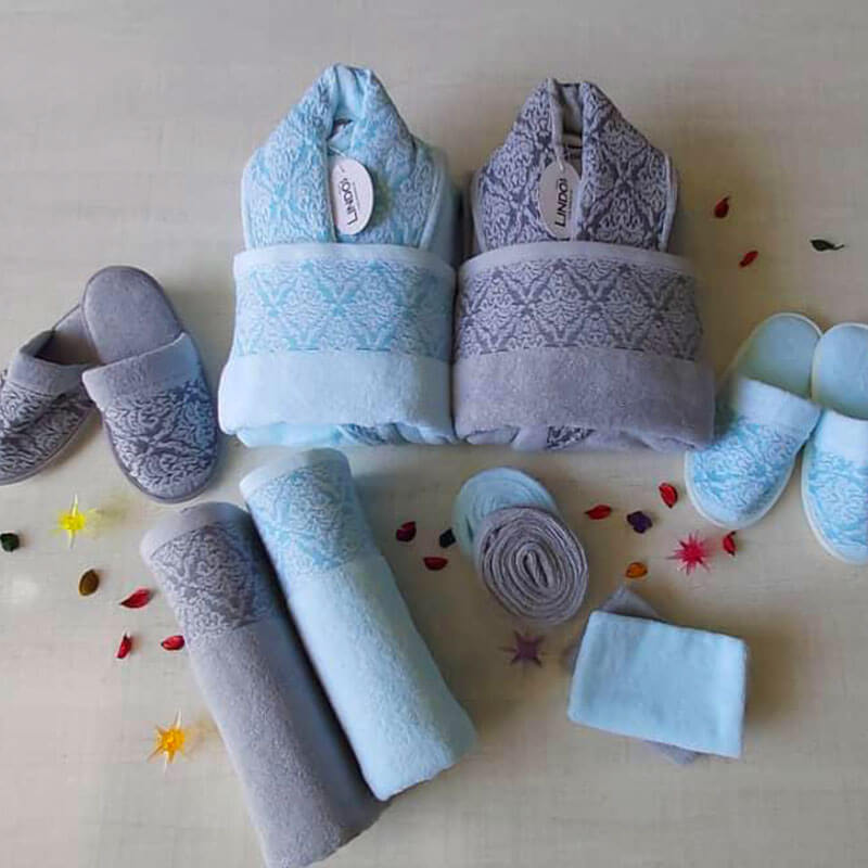 ست حوله لیندو برای استفاده عروس و داماد نقشی پر رنگ داشته که میتوانید به وضوح شاهد آن باشید دارد.