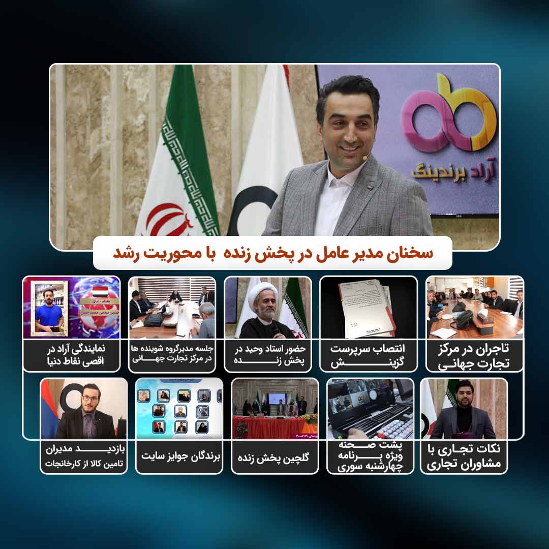 یادآوری دوباره: مشاهده پخش زنده ساعت ۲۱ تا ۲۲ و یا بازپخش آنها جز وظایف تمام کارمندان آراد برندینگ است و اگر هر کارمندی آن ها را مشاهده نکند مانند آنست که در یکی از کارهای تخصصی روزانه اش کوتاهی نموده است.