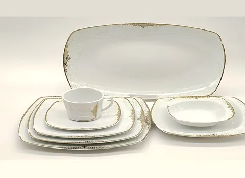 سرویس چینی شامل بشقاب، لیوان، انواع فنجان، سوپ خوری، سالادخوری، قندان و غیره دارد و دارای جنسی ظریف، شفاف و زیبا می باشد.