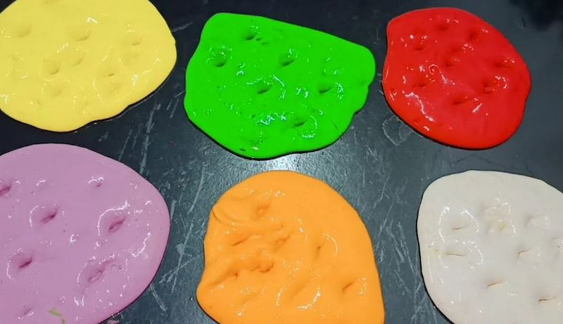 برای ساخت و اموزش اسلایم با چسب چوب و نمک ید دار می توانید از مقداری خمیر هم استفاده نمایید، حال با طی مراحل فوق یک اسلایمی درست کنید که نرمی و سفتی این نوع خمیر بیش از حد نباشد. معمولا بچه ها برای یاد گیری درس تلاشی نمی کنند ولی با بازی بهتر همه چیز را درک خواهند کرد حال از خمیر اسلایم استفاده نمایید، زیرا با انعطاف پذیری بالا، راحت به شکلهای دلخواه درآمده و با طرحهای پر محتوا از طریق بازی به کودکان خود درس را با سرگرمی آموزش دهید.