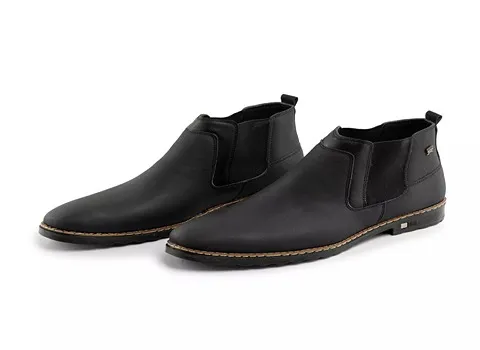 رویه کفش چرم طبیعی به هیچ عنوان یک دست نبوده و دارای ناهمواریهایی است و این در حالی بوده که چرمهای مصنوعی کاملاً یکدست هستند زیره این کفش از مواد پلاستیکی نرم و بادوامی تهیه شده است که کاملا ضد آب می باشد.